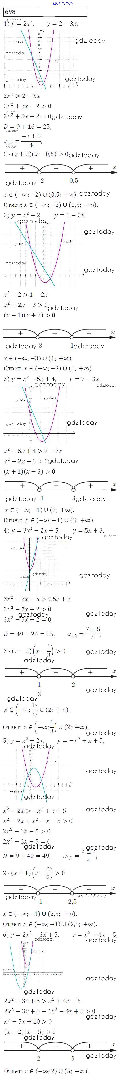 Ответы к Решение к упражнениям 698 Учебнику по Алгебре для 8 класса Колягин, Ткачева Просвещение УМК 2013