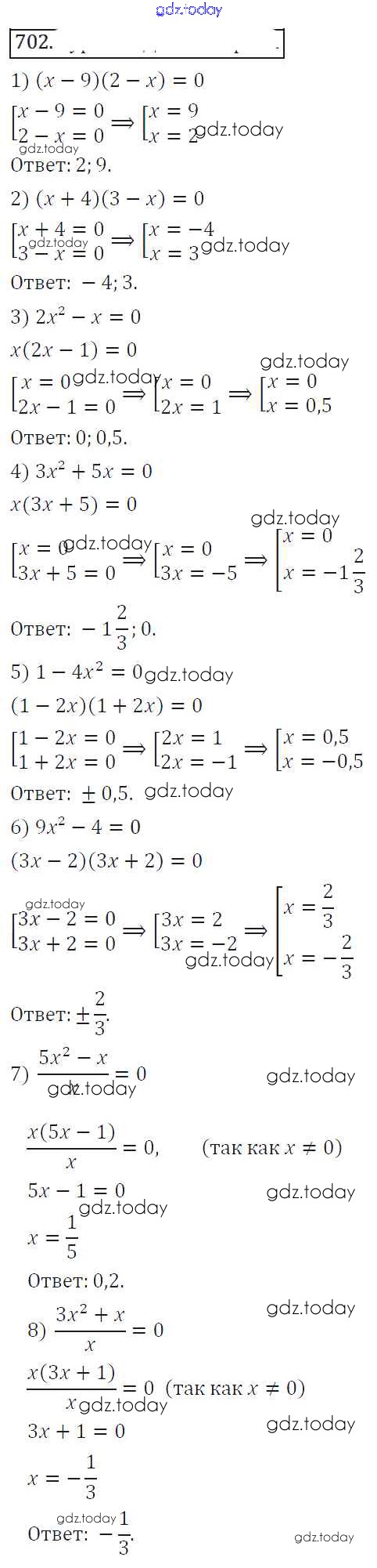 Ответы к Решение к упражнениям 702 Учебнику по Алгебре для 8 класса Колягин, Ткачева Просвещение УМК 2013