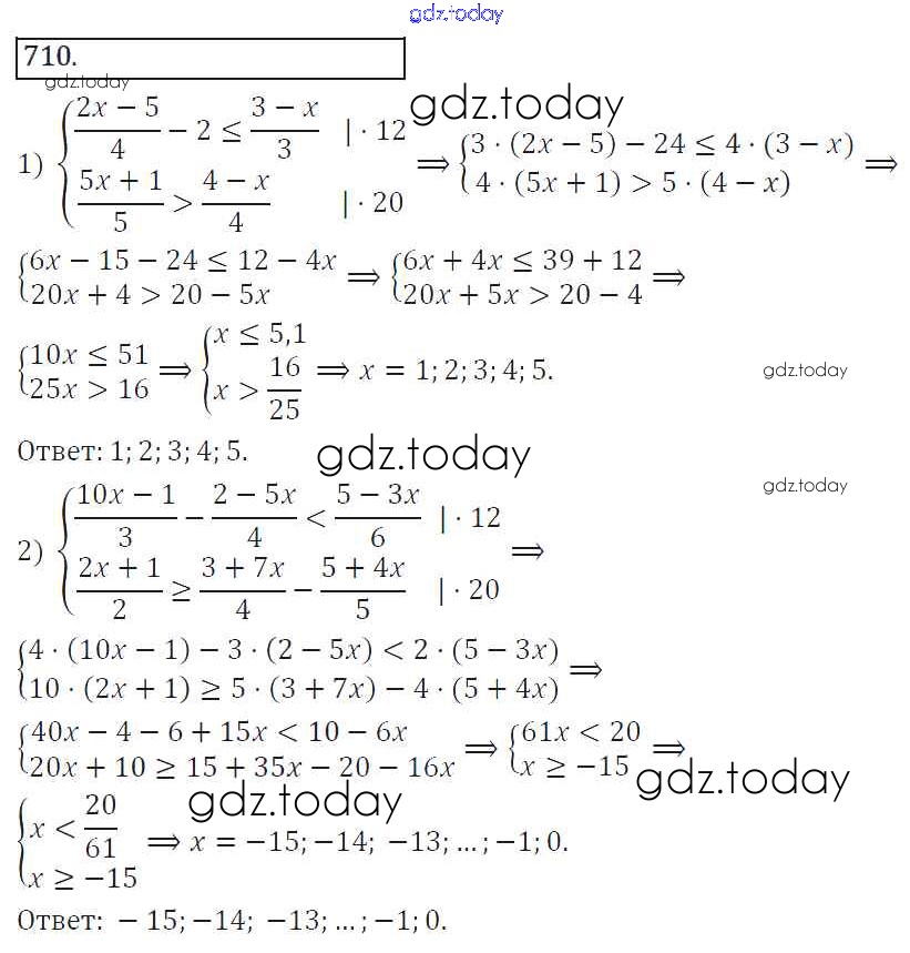 Ответы к Решение к упражнениям 710 Учебнику по Алгебре для 8 класса Колягин, Ткачева Просвещение УМК 2013