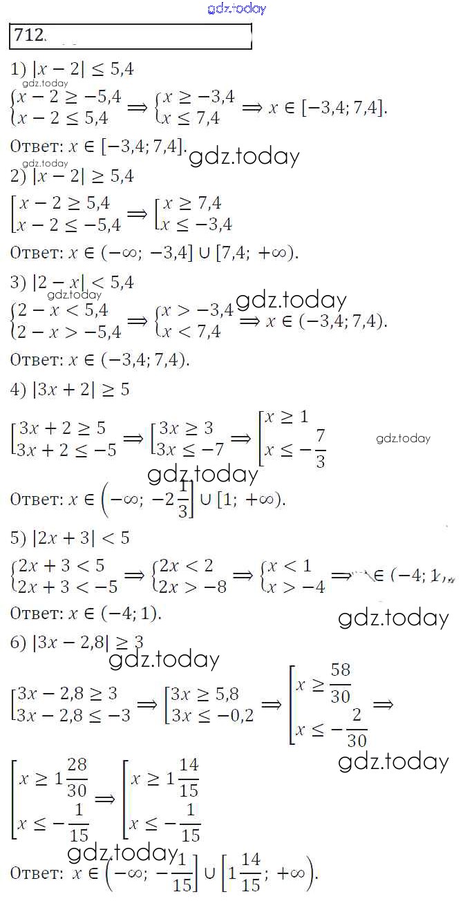 Ответы к Решение к упражнениям 712 Учебнику по Алгебре для 8 класса Колягин, Ткачева Просвещение УМК 2013