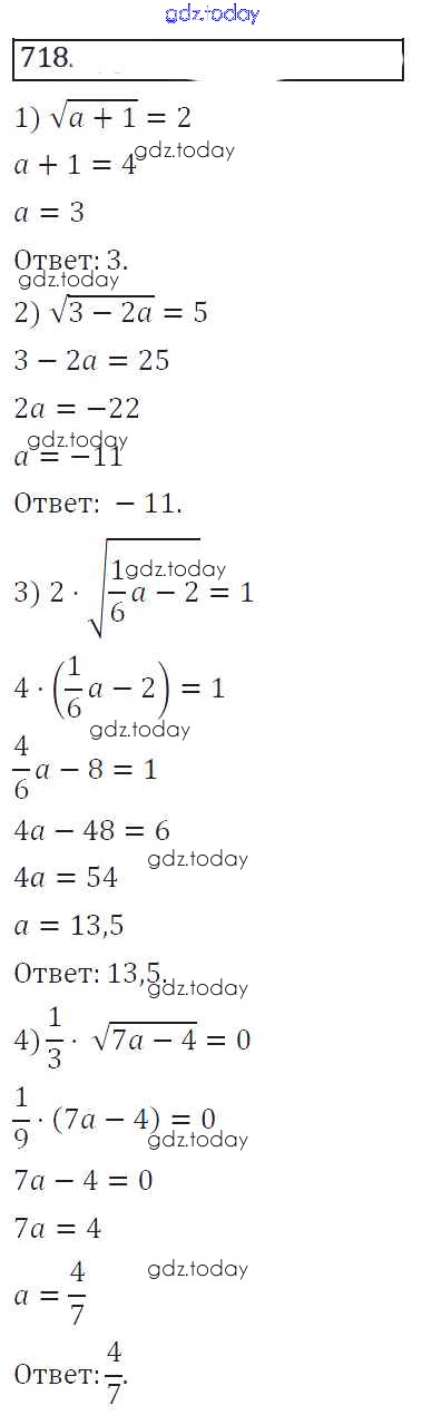 На страницах сайта gdz.today вы найдете учебный и вспомогательный материал, направленный на улучшения знаний школьной программы. ГДЗ - онлайн мир знаний Решение к упражнениям 718 Учебнику по Алгебре для 8 класса Колягин, Ткачева Просвещение УМК 2013