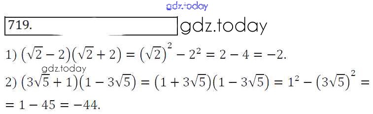 На страницах сайта gdz.today вы найдете учебный и вспомогательный материал, направленный на улучшения знаний школьной программы. ГДЗ - онлайн мир знаний Решение к упражнениям 719 Учебнику по Алгебре для 8 класса Колягин, Ткачева Просвещение УМК 2013