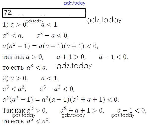 На страницах сайта gdz.today вы найдете учебный и вспомогательный материал, направленный на улучшения знаний школьной программы. ГДЗ - онлайн мир знаний Решение к упражнениям 72 Учебнику по Алгебре для 8 класса Колягин, Ткачева Просвещение УМК 2013