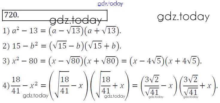 На страницах сайта gdz.today вы найдете учебный и вспомогательный материал, направленный на улучшения знаний школьной программы. ГДЗ - онлайн мир знаний Решение к упражнениям 720 Учебнику по Алгебре для 8 класса Колягин, Ткачева Просвещение УМК 2013