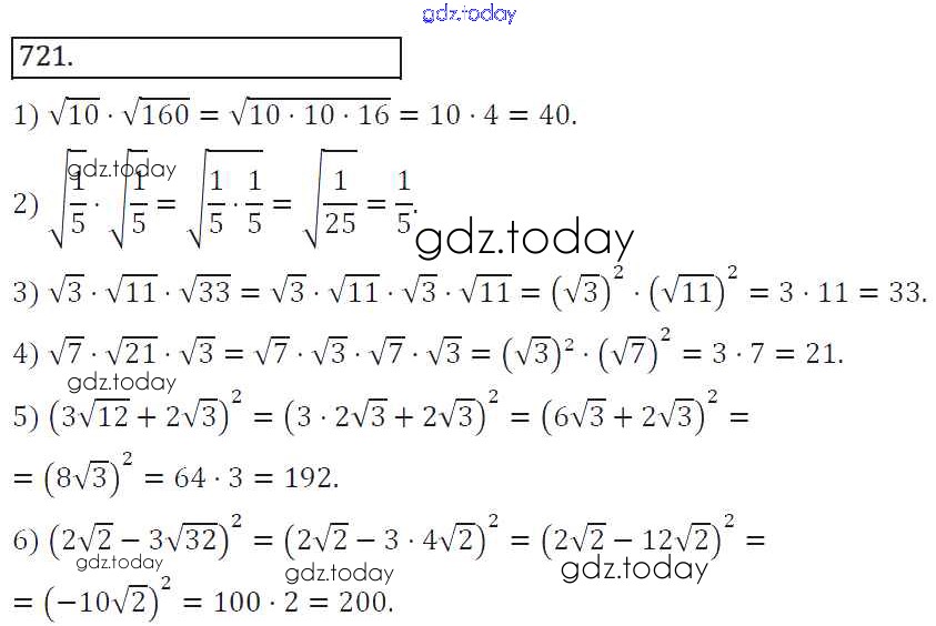 На страницах сайта gdz.today вы найдете учебный и вспомогательный материал, направленный на улучшения знаний школьной программы. ГДЗ - онлайн мир знаний Решение к упражнениям 721 Учебнику по Алгебре для 8 класса Колягин, Ткачева Просвещение УМК 2013