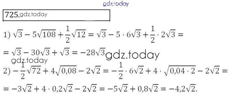 На страницах сайта gdz.today вы найдете учебный и вспомогательный материал, направленный на улучшения знаний школьной программы. ГДЗ - онлайн мир знаний Решение к упражнениям 725 Учебнику по Алгебре для 8 класса Колягин, Ткачева Просвещение УМК 2013