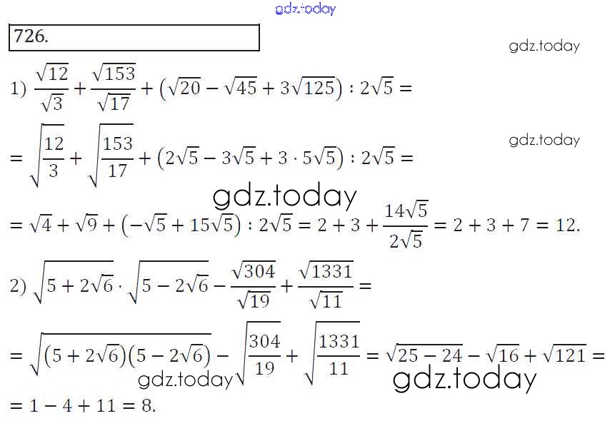 На страницах сайта gdz.today вы найдете учебный и вспомогательный материал, направленный на улучшения знаний школьной программы. ГДЗ - онлайн мир знаний Решение к упражнениям 726 Учебнику по Алгебре для 8 класса Колягин, Ткачева Просвещение УМК 2013