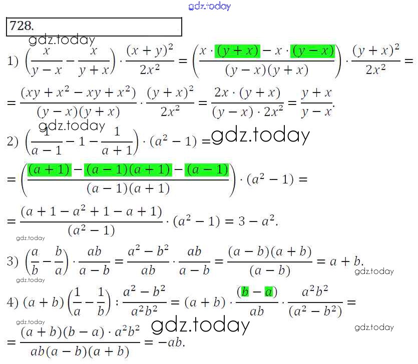 На страницах сайта gdz.today вы найдете учебный и вспомогательный материал, направленный на улучшения знаний школьной программы. ГДЗ - онлайн мир знаний Решение к упражнениям 728 Учебнику по Алгебре для 8 класса Колягин, Ткачева Просвещение УМК 2013