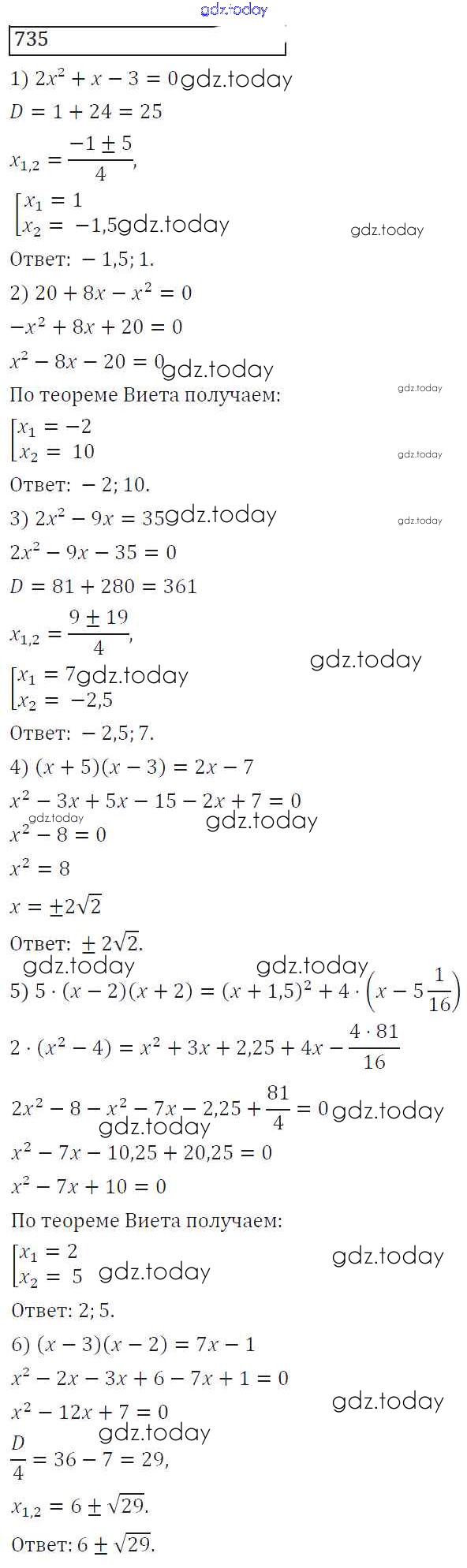 Ответы к Решение к упражнениям 735 Учебнику по Алгебре для 8 класса Колягин, Ткачева Просвещение УМК 2013