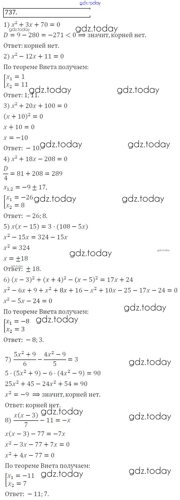 На страницах сайта gdz.today вы найдете учебный и вспомогательный материал, направленный на улучшения знаний школьной программы. ГДЗ - онлайн мир знаний Решение к упражнениям 737 Учебнику по Алгебре для 8 класса Колягин, Ткачева Просвещение УМК 2013
