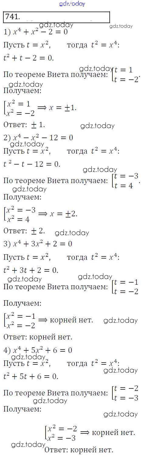 Ответы к Решение к упражнениям 741 Учебнику по Алгебре для 8 класса Колягин, Ткачева Просвещение УМК 2013