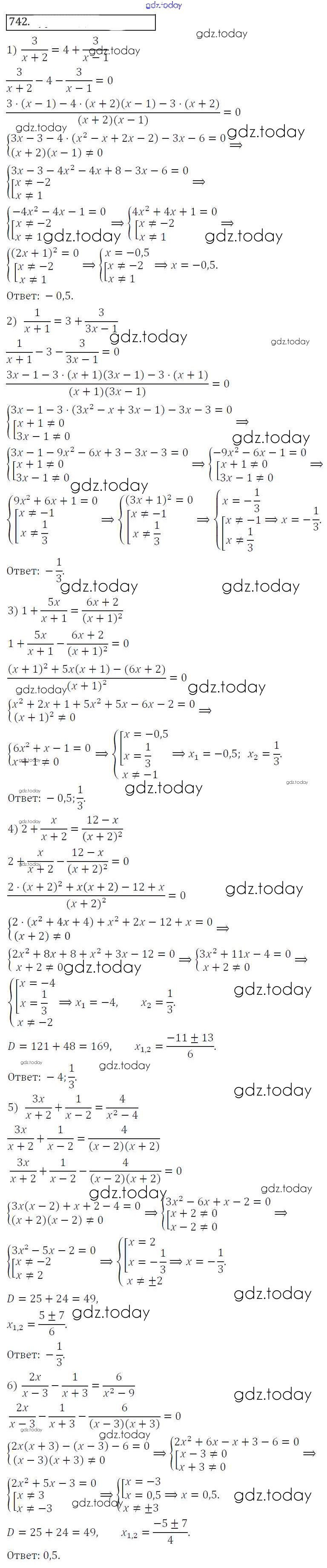 Ответы к Решение к упражнениям 742 Учебнику по Алгебре для 8 класса Колягин, Ткачева Просвещение УМК 2013