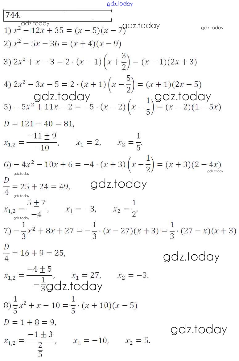Ответы к Решение к упражнениям 744 Учебнику по Алгебре для 8 класса Колягин, Ткачева Просвещение УМК 2013