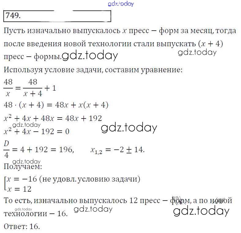 На страницах сайта gdz.today вы найдете учебный и вспомогательный материал, направленный на улучшения знаний школьной программы. ГДЗ - онлайн мир знаний Решение к упражнениям 749 Учебнику по Алгебре для 8 класса Колягин, Ткачева Просвещение УМК 2013