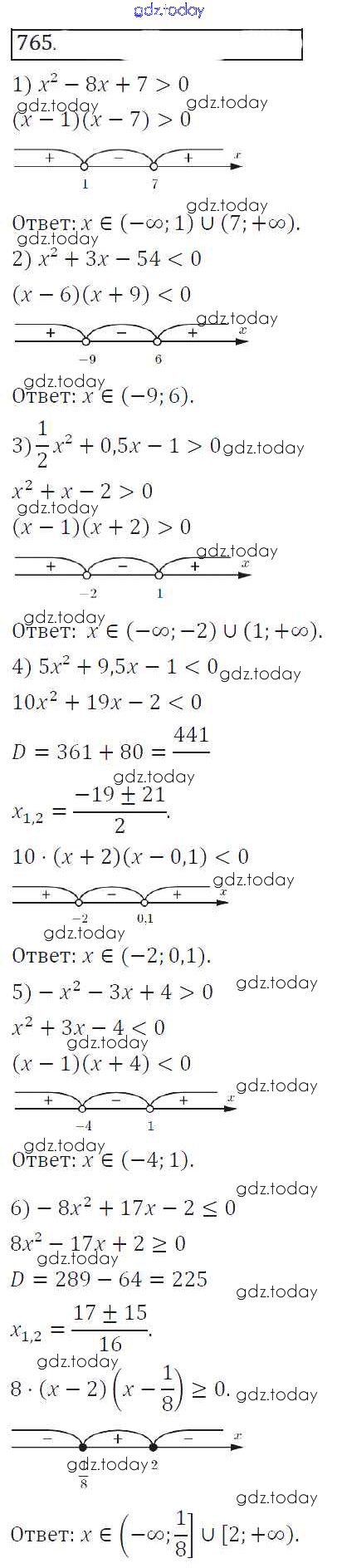 Ответы к Решение к упражнениям 765 Учебнику по Алгебре для 8 класса Колягин, Ткачева Просвещение УМК 2013