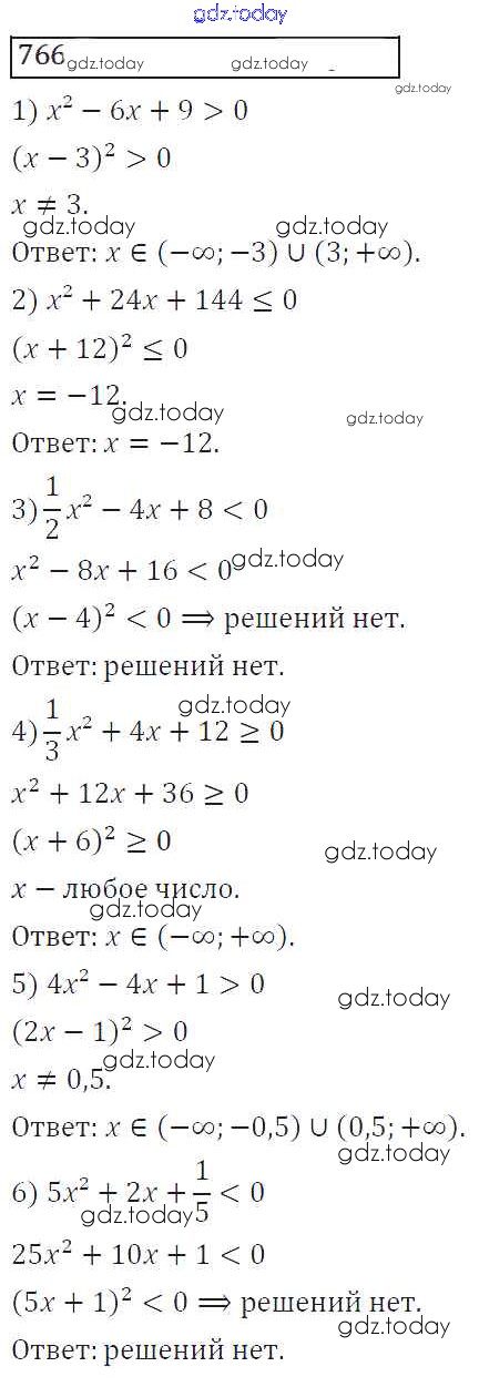 Ответы к Решение к упражнениям 766 Учебнику по Алгебре для 8 класса Колягин, Ткачева Просвещение УМК 2013