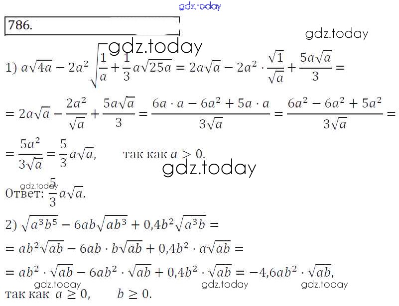 На страницах сайта gdz.today вы найдете учебный и вспомогательный материал, направленный на улучшения знаний школьной программы. ГДЗ - онлайн мир знаний Решение к упражнениям 786 Учебнику по Алгебре для 8 класса Колягин, Ткачева Просвещение УМК 2013