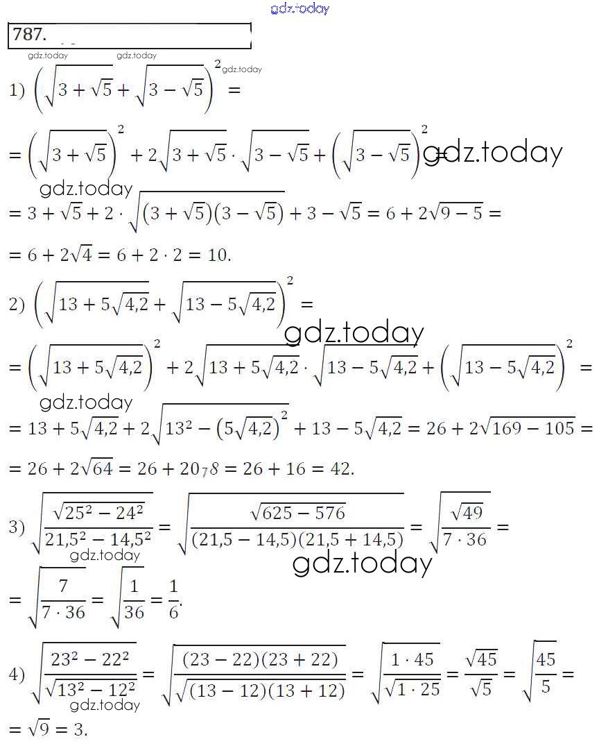На страницах сайта gdz.today вы найдете учебный и вспомогательный материал, направленный на улучшения знаний школьной программы. ГДЗ - онлайн мир знаний Решение к упражнениям 787 Учебнику по Алгебре для 8 класса Колягин, Ткачева Просвещение УМК 2013