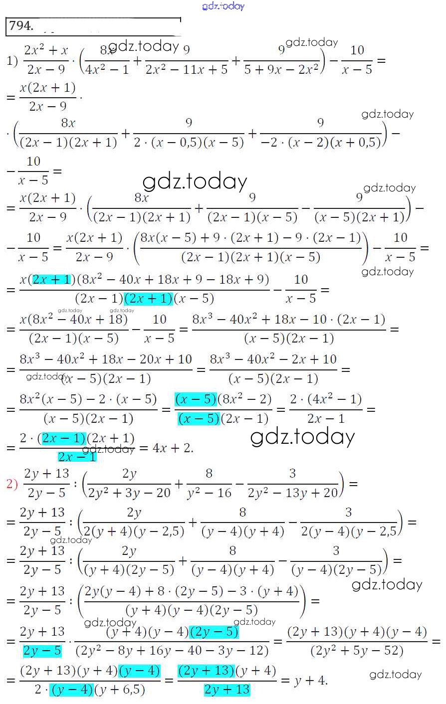 Ответы к Решение к упражнениям 794 Учебнику по Алгебре для 8 класса Колягин, Ткачева Просвещение УМК 2013