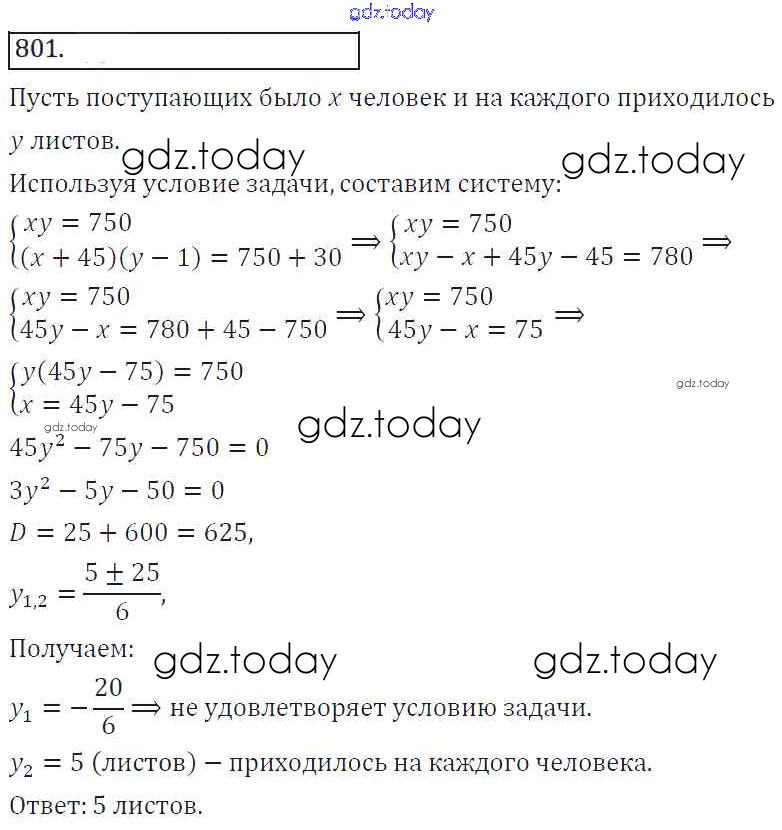 Ответы к Решение к упражнениям 801 Учебнику по Алгебре для 8 класса Колягин, Ткачева Просвещение УМК 2013