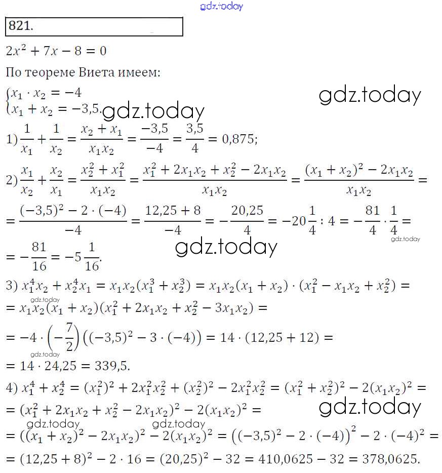 Ответы к Решение к упражнениям 821 Учебнику по Алгебре для 8 класса Колягин, Ткачева Просвещение УМК 2013