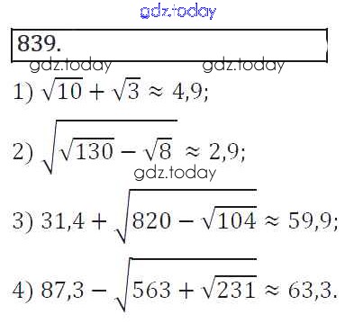 На страницах сайта gdz.today вы найдете учебный и вспомогательный материал, направленный на улучшения знаний школьной программы. ГДЗ - онлайн мир знаний Решение к упражнениям 839 Учебнику по Алгебре для 8 класса Колягин, Ткачева Просвещение УМК 2013