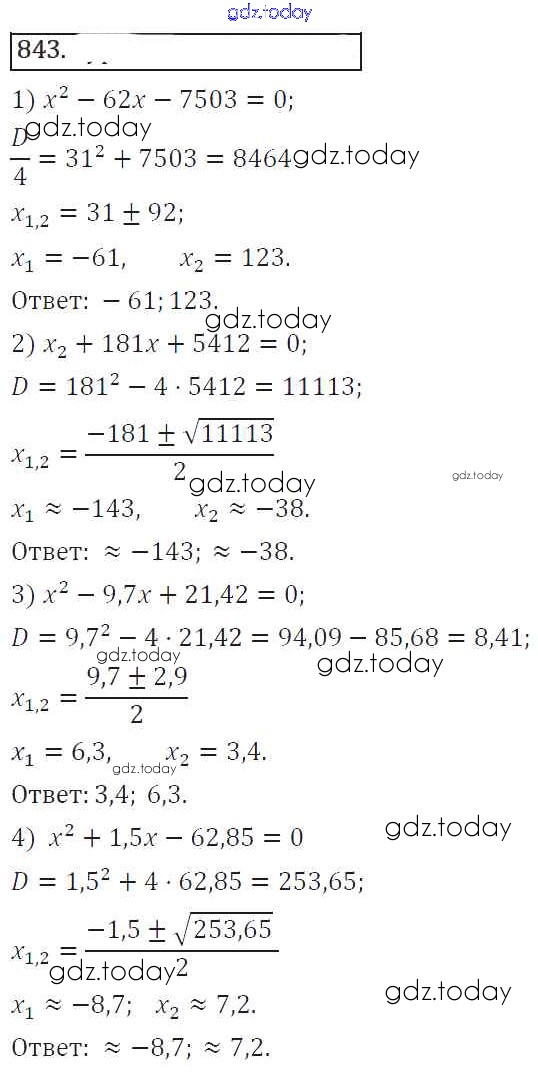 Ответы к Решение к упражнениям 843 Учебнику по Алгебре для 8 класса Колягин, Ткачева Просвещение УМК 2013