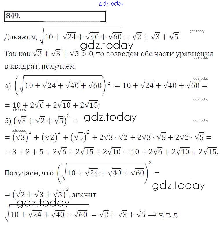 На страницах сайта gdz.today вы найдете учебный и вспомогательный материал, направленный на улучшения знаний школьной программы. ГДЗ - онлайн мир знаний Решение к упражнениям 849 Учебнику по Алгебре для 8 класса Колягин, Ткачева Просвещение УМК 2013