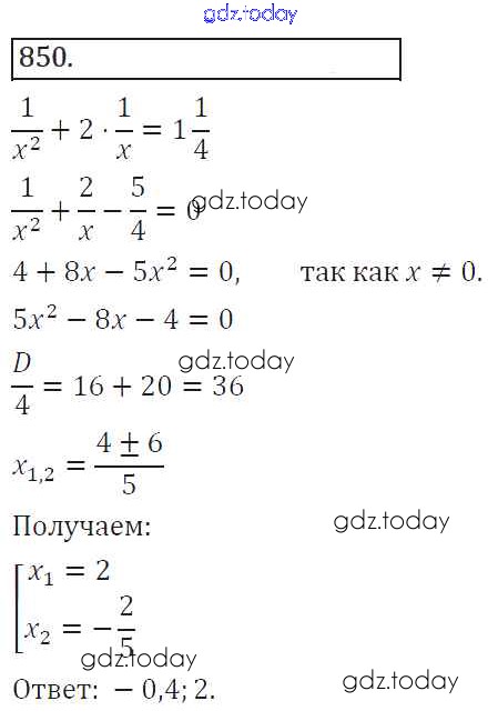 Ответы к Решение к упражнениям 850 Учебнику по Алгебре для 8 класса Колягин, Ткачева Просвещение УМК 2013