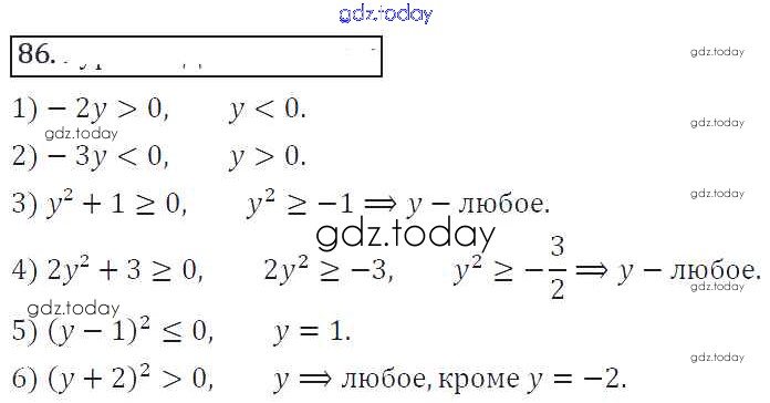 На страницах сайта gdz.today вы найдете учебный и вспомогательный материал, направленный на улучшения знаний школьной программы. ГДЗ - онлайн мир знаний Решение к упражнениям 86 Учебнику по Алгебре для 8 класса Колягин, Ткачева Просвещение УМК 2013