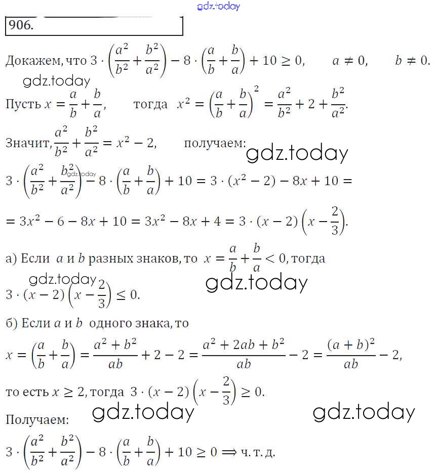 Ответы к Решение к упражнениям 906 Учебнику по Алгебре для 8 класса Колягин, Ткачева Просвещение УМК 2013