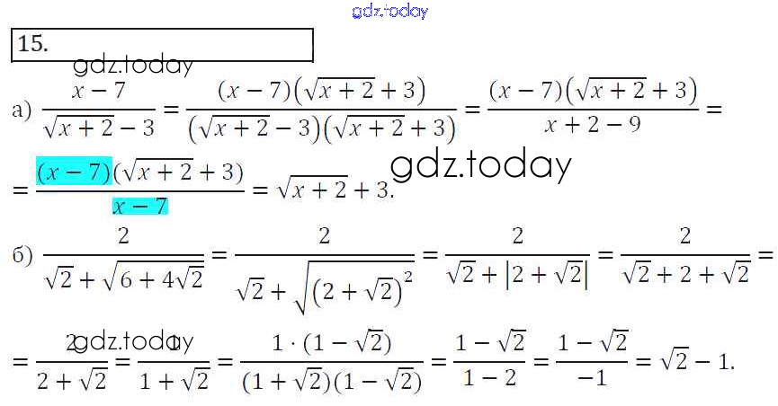 На страницах сайта gdz.today вы найдете учебный и вспомогательный материал, направленный на улучшения знаний школьной программы. ГДЗ - онлайн мир знаний Глава 3. Упражнения Проверь себя (решение) 15 Учебнику по Алгебре для 8 класса Колягин, Ткачева Просвещение УМК 2013