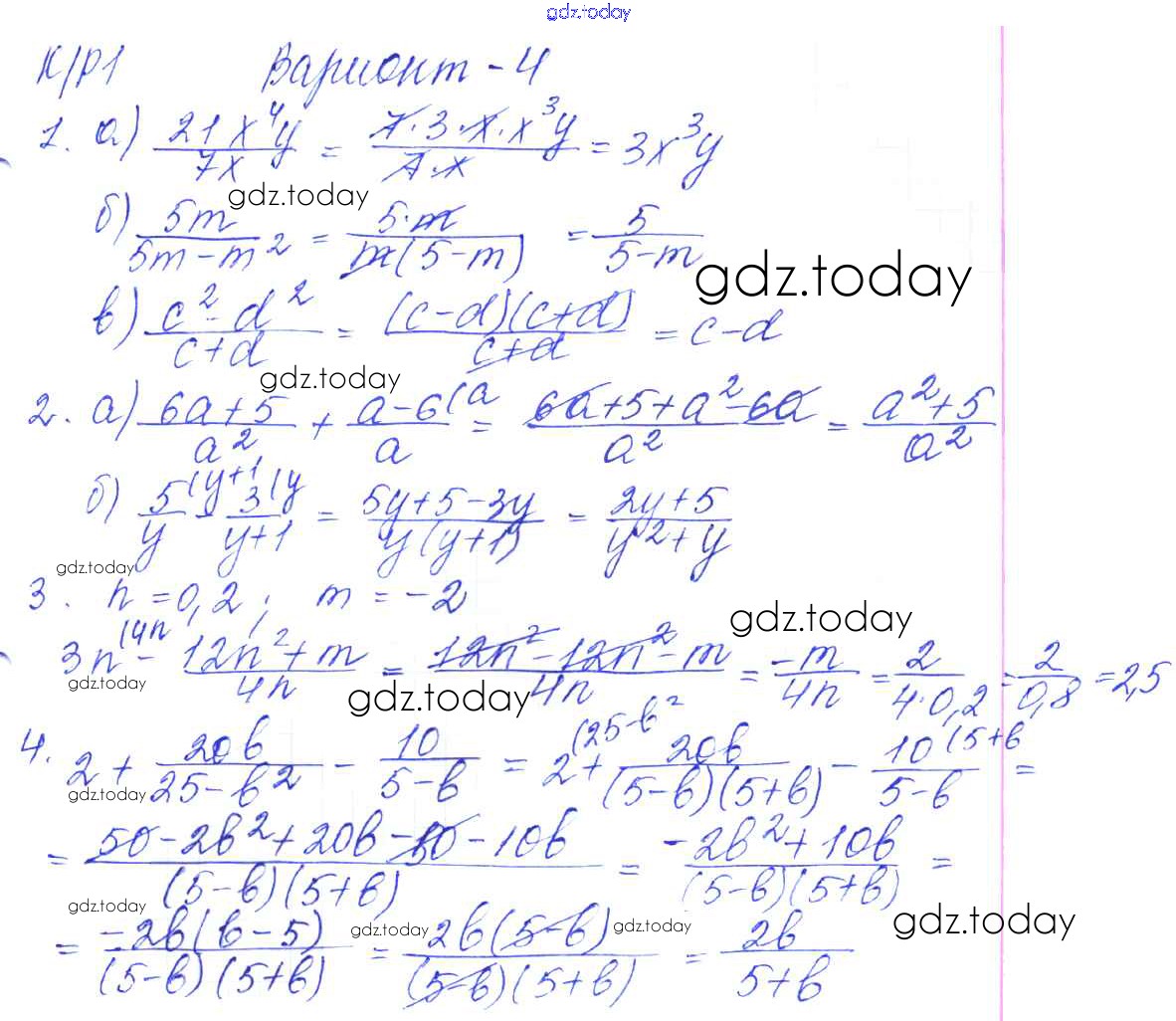На страницах сайта gdz.today вы найдете учебный и вспомогательный материал, направленный на улучшения знаний школьной программы. ГДЗ - онлайн мир знаний Решение к КР-1. Сумма и разность дробей. Варианты 4 Контрольным работам по Алгебре для 8 класса Дудницын, Кронгауз Экзамен УМК 2010