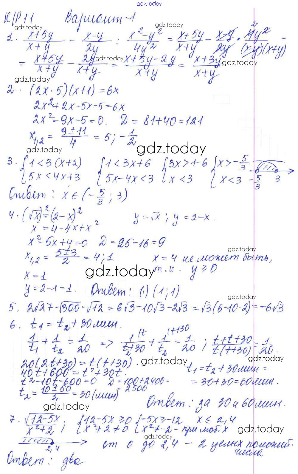 На страницах сайта gdz.today вы найдете учебный и вспомогательный материал, направленный на улучшения знаний школьной программы. ГДЗ - онлайн мир знаний Решение к итоговой контрольной работе. Варианты 1 Контрольным работам по Алгебре для 8 класса Дудницын, Кронгауз Экзамен УМК 2010