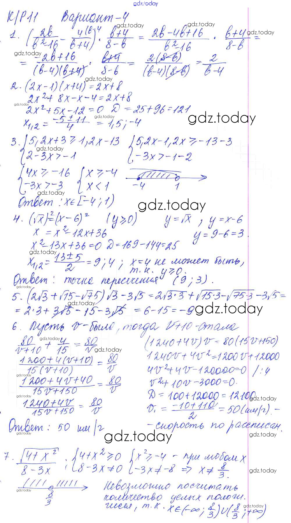 На страницах сайта gdz.today вы найдете учебный и вспомогательный материал, направленный на улучшения знаний школьной программы. ГДЗ - онлайн мир знаний Решение к итоговой контрольной работе. Варианты 4 Контрольным работам по Алгебре для 8 класса Дудницын, Кронгауз Экзамен УМК 2010