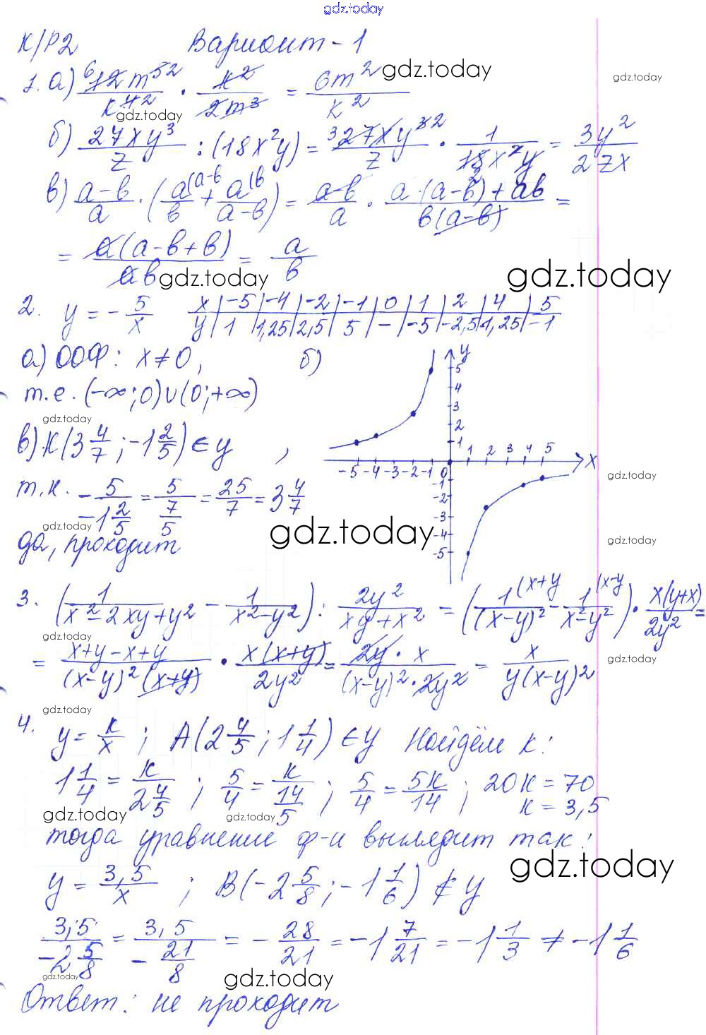 На страницах сайта gdz.today вы найдете учебный и вспомогательный материал, направленный на улучшения знаний школьной программы. ГДЗ - онлайн мир знаний Решение к КР-2. Произведение и частное дробей. Варианты 1 Контрольным работам по Алгебре для 8 класса Дудницын, Кронгауз Экзамен УМК 2010