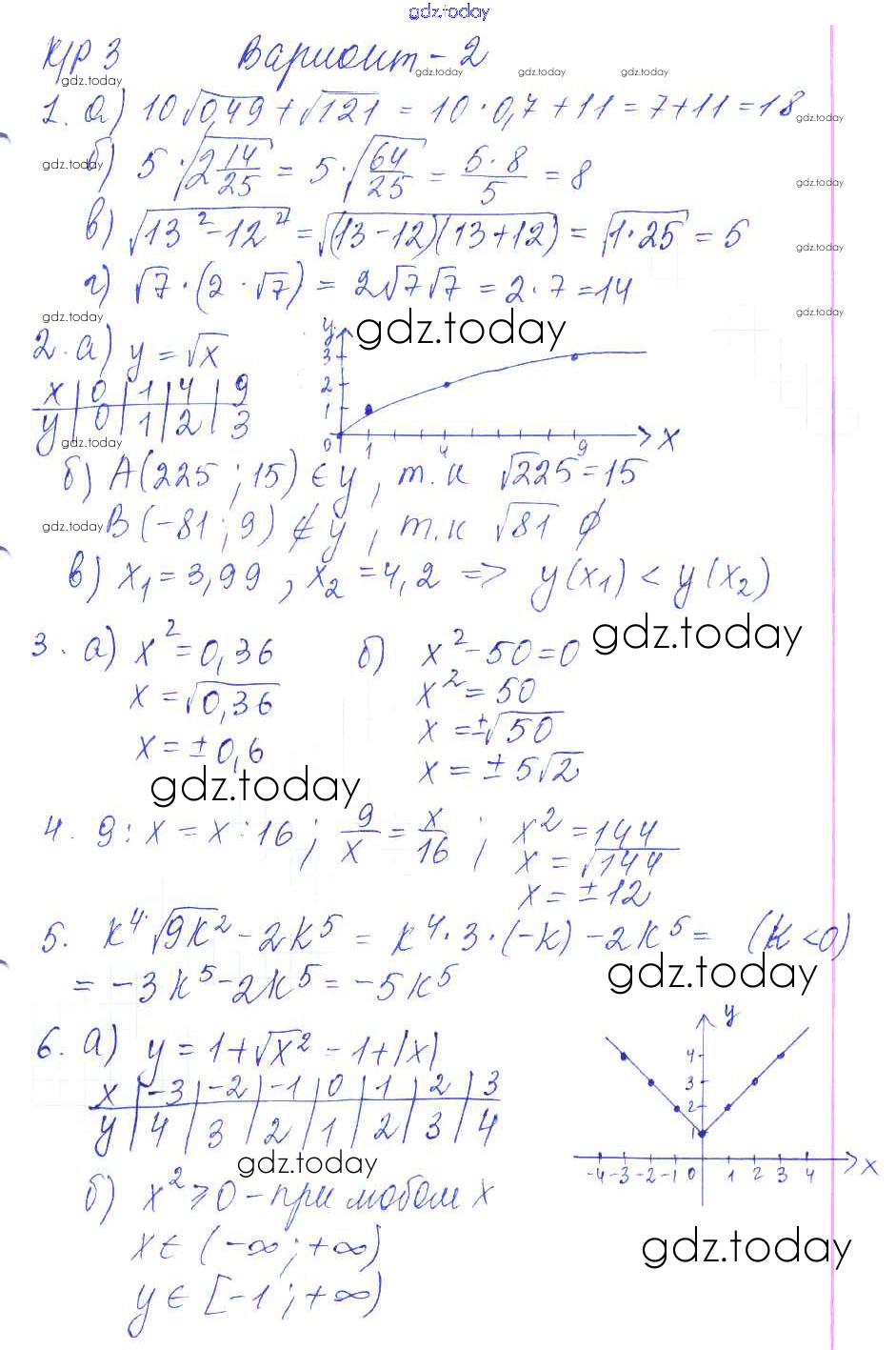 На страницах сайта gdz.today вы найдете учебный и вспомогательный материал, направленный на улучшения знаний школьной программы. ГДЗ - онлайн мир знаний Решение к КР-3. Арифметический квадратный корень. Варианты 2 Контрольным работам по Алгебре для 8 класса Дудницын, Кронгауз Экзамен УМК 2010