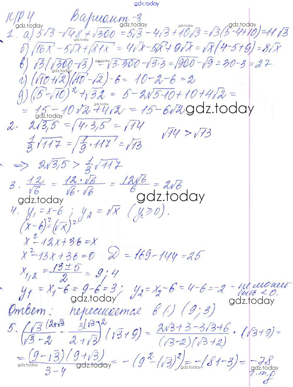 На страницах сайта gdz.today вы найдете учебный и вспомогательный материал, направленный на улучшения знаний школьной программы. ГДЗ - онлайн мир знаний Решение к КР-4. Применение свойств арифметического квадратного корня. Варианты 3 Контрольным работам по Алгебре для 8 класса Дудницын, Кронгауз Экзамен УМК 2010