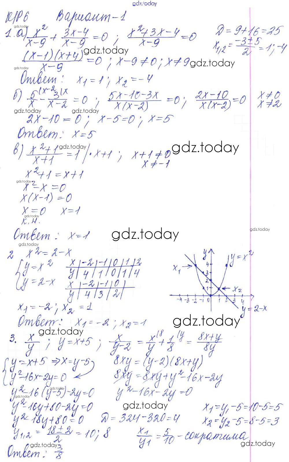 На страницах сайта gdz.today вы найдете учебный и вспомогательный материал, направленный на улучшения знаний школьной программы. ГДЗ - онлайн мир знаний Решение к КР-6. Дробные рациональные уравнения. Варианты 1 Контрольным работам по Алгебре для 8 класса Дудницын, Кронгауз Экзамен УМК 2010