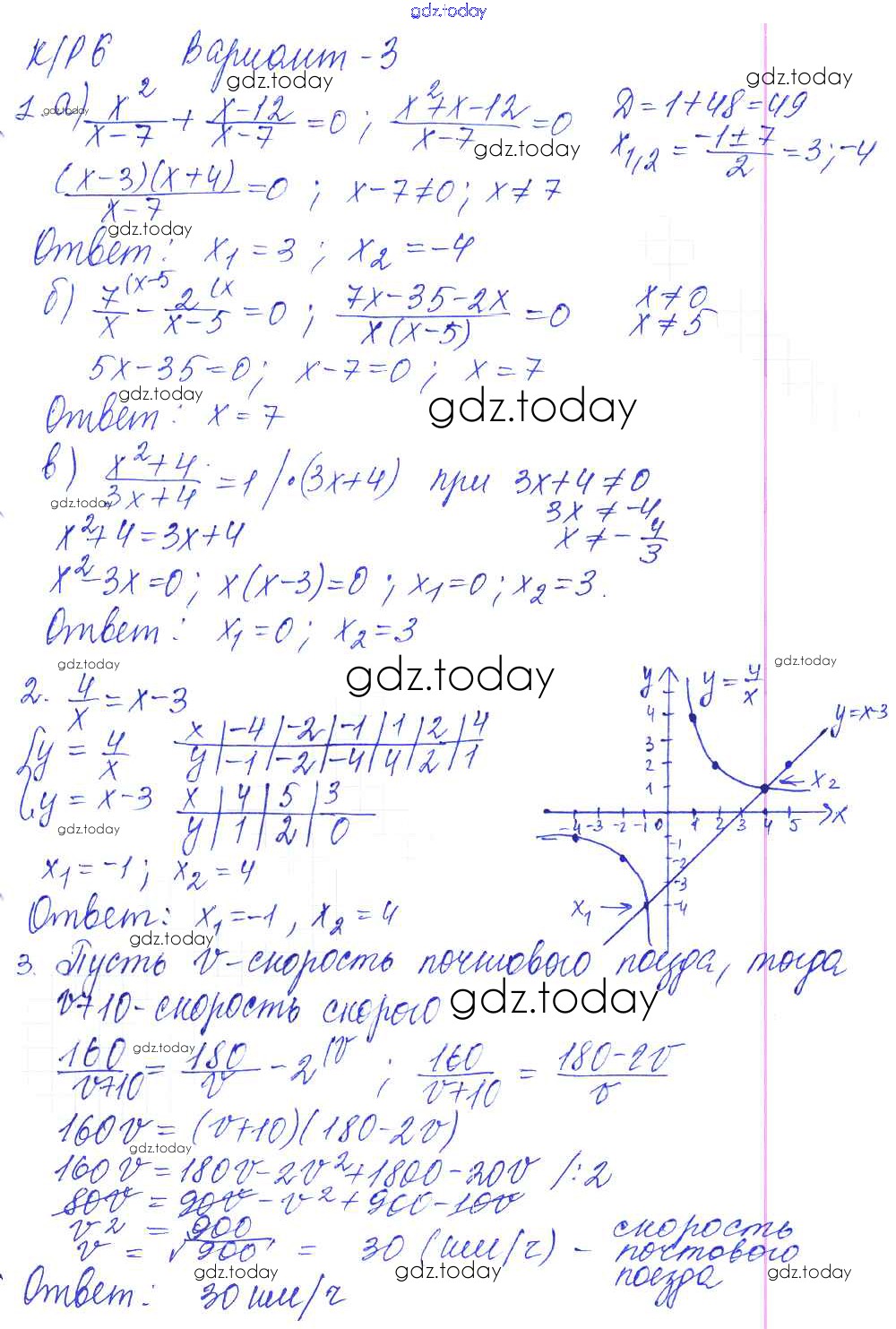 На страницах сайта gdz.today вы найдете учебный и вспомогательный материал, направленный на улучшения знаний школьной программы. ГДЗ - онлайн мир знаний Решение к КР-6. Дробные рациональные уравнения. Варианты 3 Контрольным работам по Алгебре для 8 класса Дудницын, Кронгауз Экзамен УМК 2010