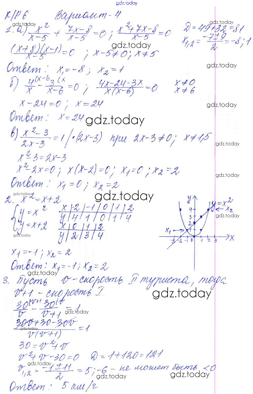 На страницах сайта gdz.today вы найдете учебный и вспомогательный материал, направленный на улучшения знаний школьной программы. ГДЗ - онлайн мир знаний Решение к КР-6. Дробные рациональные уравнения. Варианты 4 Контрольным работам по Алгебре для 8 класса Дудницын, Кронгауз Экзамен УМК 2010