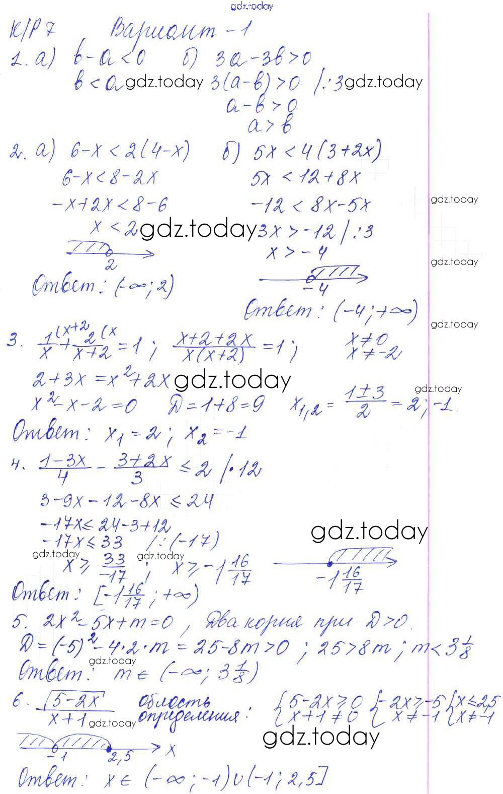 На страницах сайта gdz.today вы найдете учебный и вспомогательный материал, направленный на улучшения знаний школьной программы. ГДЗ - онлайн мир знаний Решение к КР-7. Неравенства с одной переменной. Варианты 1 Контрольным работам по Алгебре для 8 класса Дудницын, Кронгауз Экзамен УМК 2010