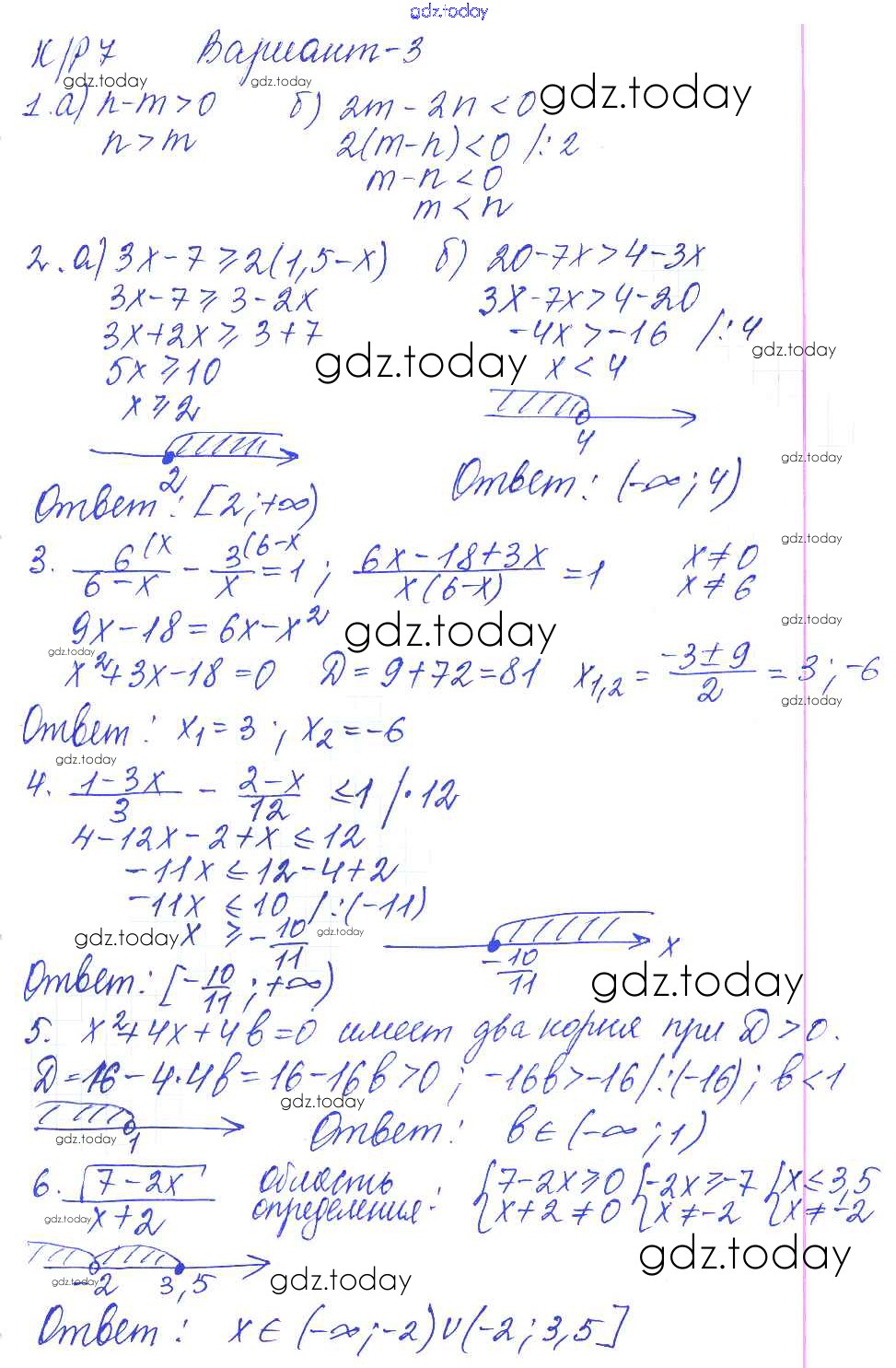 На страницах сайта gdz.today вы найдете учебный и вспомогательный материал, направленный на улучшения знаний школьной программы. ГДЗ - онлайн мир знаний Решение к КР-7. Неравенства с одной переменной. Варианты 3 Контрольным работам по Алгебре для 8 класса Дудницын, Кронгауз Экзамен УМК 2010