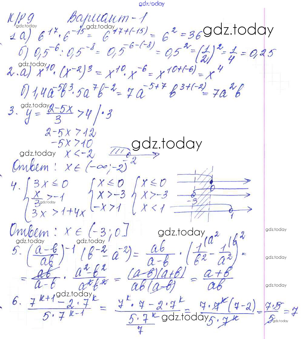 Решение к КР-9. Степень с целым показателем. Варианты