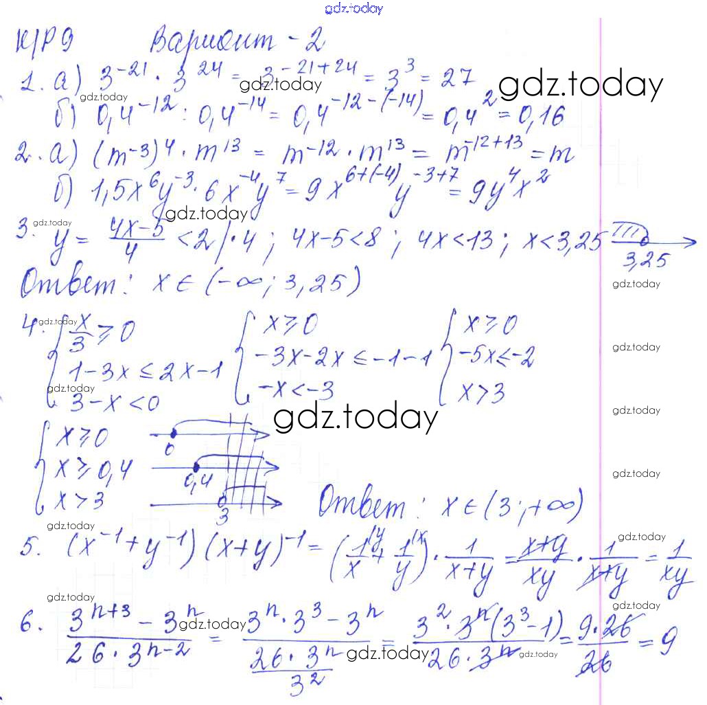 Решение к КР-9. Степень с целым показателем. Варианты