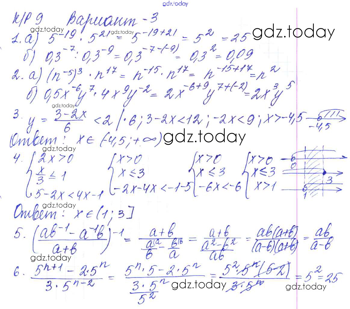 На страницах сайта gdz.today вы найдете учебный и вспомогательный материал, направленный на улучшения знаний школьной программы. ГДЗ - онлайн мир знаний Решение к КР-9. Степень с целым показателем. Варианты 3 Контрольным работам по Алгебре для 8 класса Дудницын, Кронгауз Экзамен УМК 2010