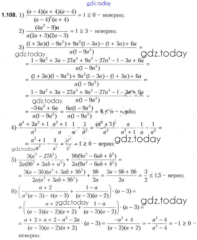 Ответы к Решение к главе 1 1.108 Учебнику по Алгебре для 8 класса Кузнецова, Муравьева Народная асвета 2015