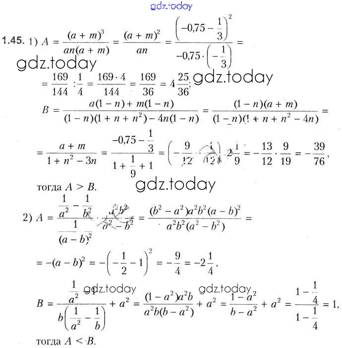 Ответы к Решение к главе 1 1.45 Учебнику по Алгебре для 8 класса Кузнецова, Муравьева Народная асвета 2015