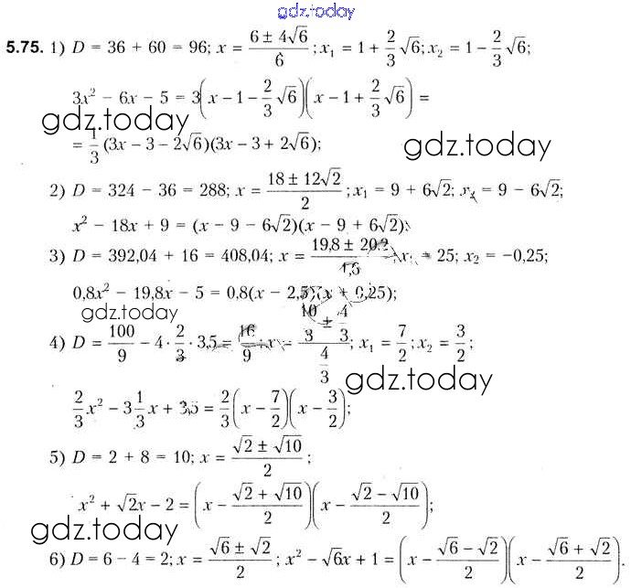 На страницах сайта gdz.today вы найдете учебный и вспомогательный материал, направленный на улучшения знаний школьной программы. ГДЗ - онлайн мир знаний Решение к главе 5 5.75 Учебнику по Алгебре для 8 класса Кузнецова, Муравьева Народная асвета 2015