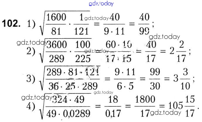 Ответы к Повторение (решение) 102 Учебнику по Алгебре для 8 класса Кузнецова, Муравьева Народная асвета 2015